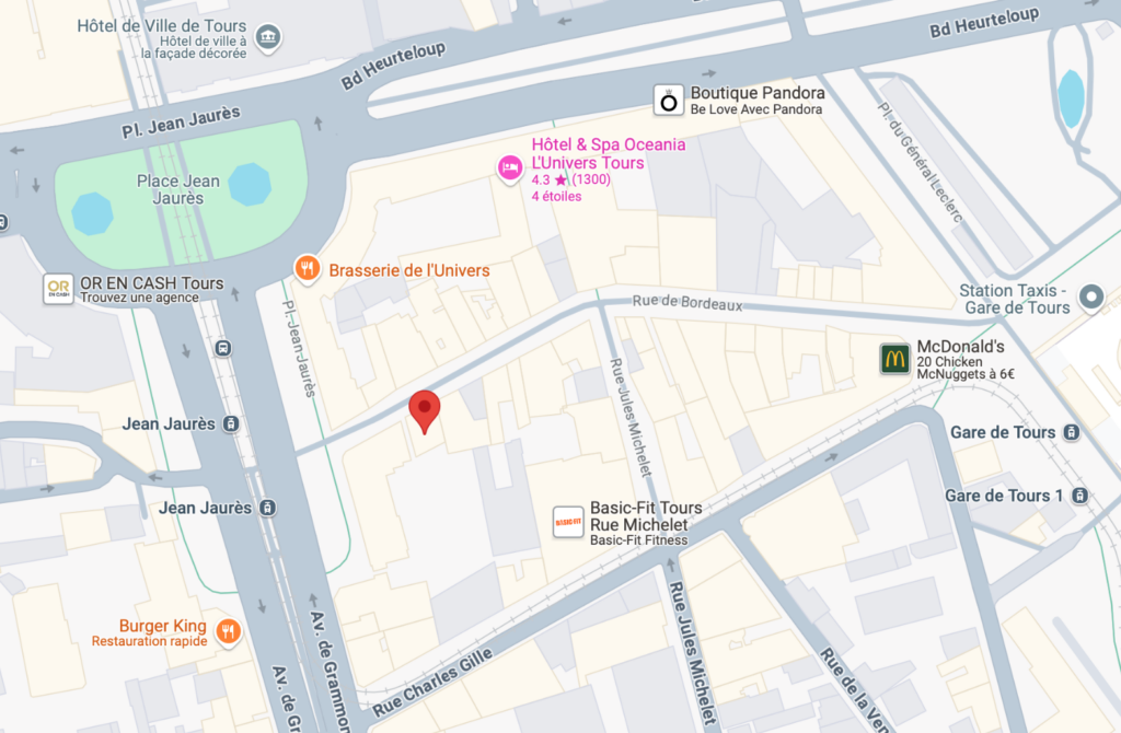 Rencontrez-nous dans le centre-ville de Tours , au 3 Rue de Bordeaux, à deux pas de la place Jean Jau’ et de la Gare.
